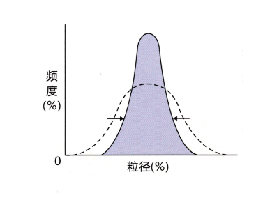 ![]() 相比傳統磨機,即使在相同的平均粒徑,它可以得到集中的粒度分布。 |